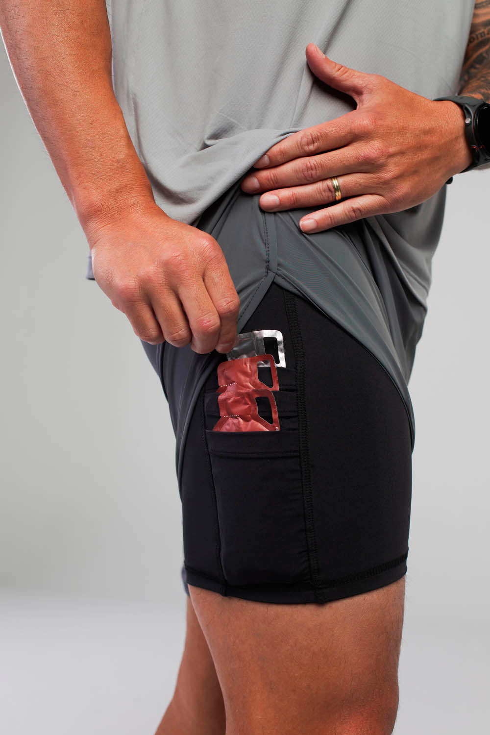 Enquanto os shorts convencionais dificultam o acesso ao gel no meio da prova, levantando a camada externa junto com o movimento, o PocketPace faz o oposto: os bolsos ficam na compressão interna, estáveis e ao alcance da mão. Você segue no ritmo, sem perder tempo, sem perder foco.