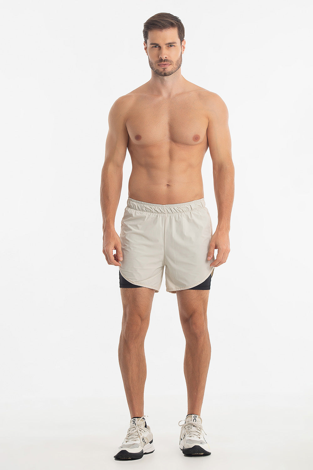 Shorts 2 em 1 PocketPace Masculino – Areia