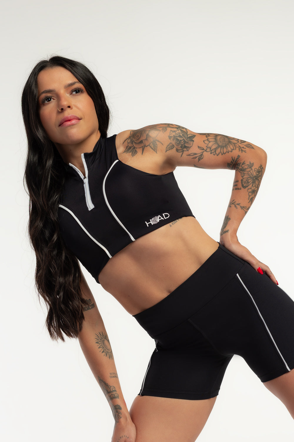 Sua modelagem anatômica garante ajuste perfeito ao corpo, oferecendo suporte sem limitar os movimentos. O cós firme em cintura média valoriza a silhueta e mantém a peça no lugar durante qualquer exercício. Além disso, o design moderno reforça a sensação de segurança e estilo.