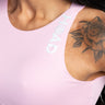 As alças largas estabilizam sem apertar. O elástico de 4cm na barra mantém tudo no lugar até o último minuto do treino.